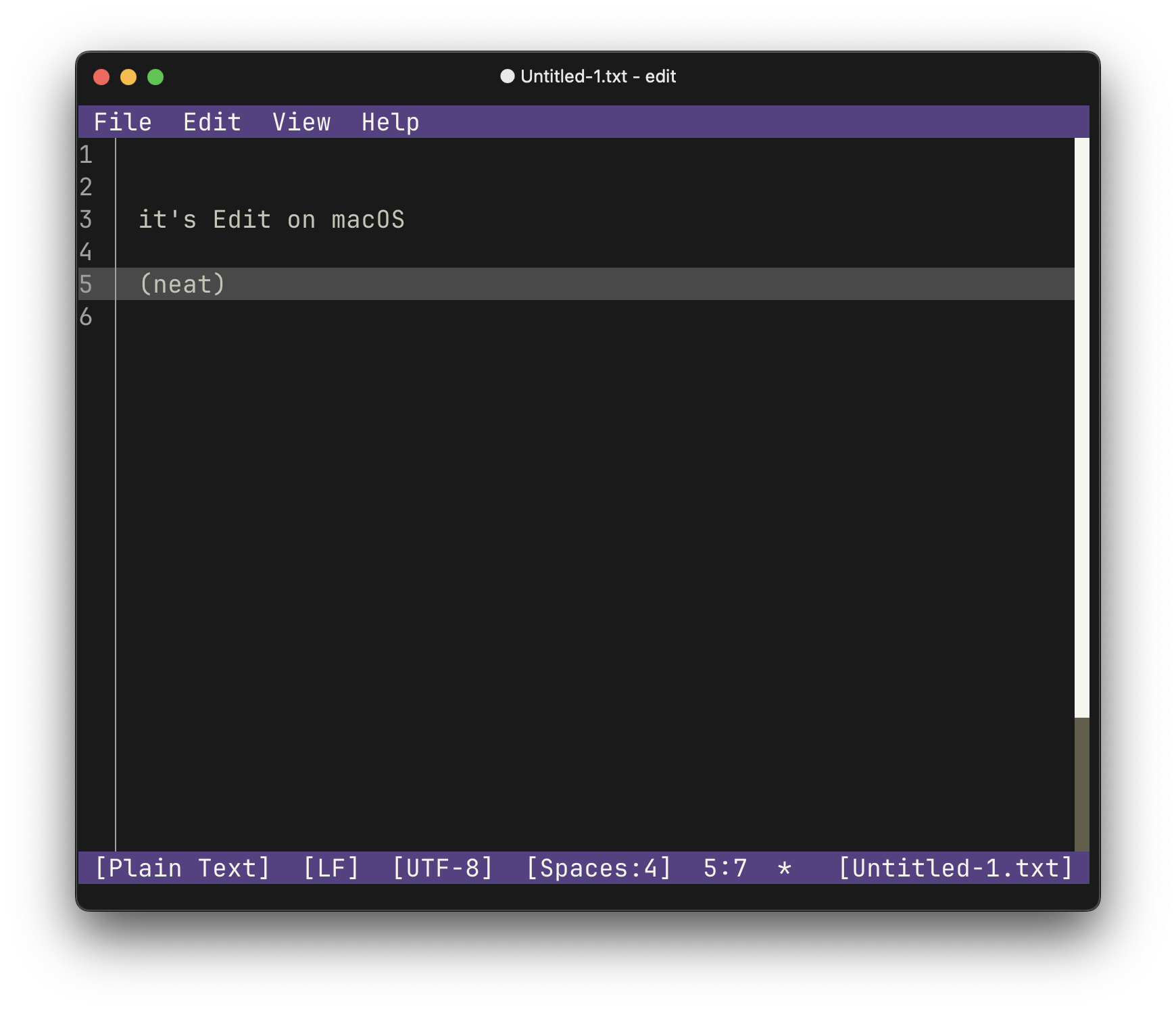Now with my trivial PR merged, Edit for Window also works on macOS: https://github.com/microsoft/edit/pull/72